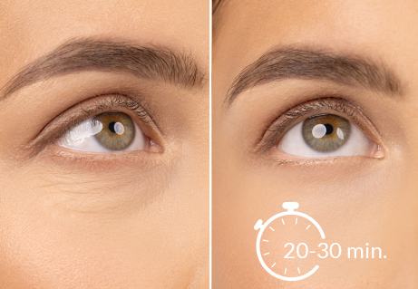 A tapasz formula kollagénnel, retinollal, ceramidokkal és C-vitaminnal átfogó öregedésgátló és tápláló előnyöket nyújt. Már a legelső használatot követően a bőr mélyen hidratált, simább és tónusosabb lesz. Rendszeres használata segít csökkenteni a sötét karikákat és a puffadást, javítja a feszességet és megvilágosítja a szem területét, láthatóan fiatalabb, pihentebb megjelenést nyújtva, hasonlóan a mezoterápia vagy karboxiterápia eredményeivel.