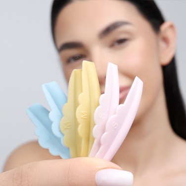 Először is illeszd a szilikon rudak egyikét a szemhez a három elérhető méret közül. Ha szükséges, a széleket könnyedén levághatod, hogy a rúd jobban tapadjon a szemhéjhoz. A rúdjaink készítéséhez használt szilikon kiváló tapadást biztosít. Ha szükséges, vigyél fel egy kis ragasztót a rúd alá, hogy a szempilla felvarrás során tökéletesen tapadjon a bőrhöz. Ezután fésüld szempilláidat a hengerre ugyanezzel a ragasztóval.